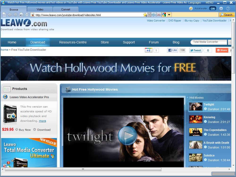 Leawo Video Accelerator, ak�c� olarak sorunsuz video oynat�m� sa�lamak ve ayn� zamanda sevdi�iniz videolar� h�zl�ca indirmenizi sa�layan �ok ama�l� bir programd�r. Myspace, Dailymotion, Hulu, Facebook, vb. gibi �e�itli video payla��m sitelerinden videolar� indirmenizi sa�lar. Ayr�ca videolar�n�z� MP4, AVI, MKV, WMV gibi �e�itli bi�imlere online olarak d�n��t�rebilirsiniz. Video indirme, sorunsuz oynatma, video d�n��t�rme ve d�zenleme gibi bir�ok (all-in-one) hepsi bir arada �zelliklere sahip g��l� bir video program�d�r.