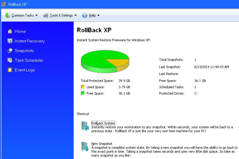 Rollback XP! �CRETS�Z ... Windows XP Sistemleri i�in Geri Y�kleme Yard�mc� Program�d�r. Sisteminizi saniyeler i�inde geri getirmenizi sa�lar.(�cretsiz olan yaz�l�m ile 10 adet geri d�n�� noktas� olu�turabilirsiniz.)