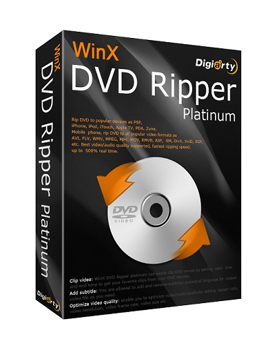 WinX DVD Ripper Platinum, kopya korumal� DVD�ler de dahil t�m DVD�lerdeki filmlerinizi, videolar�n�z� ve m�ziklerinizi kopyalaman�z� sa�lar. Ayr�ca video ve m�ziklerinizi istedi�iniz formata d�n��t�rebilir ve iPhone, iPad, iPod, PSP, Zune, Zen, HTC, Samsung, Xoom, Galaxy Tab vb. gibi ta��nabilir cihazlar�n�za y�kleyebilirsiniz. Yaz�l�m WMV, MOV, FLV, MP3, MPEG, AVI, MP4 vb. gibi formatlar� destekler. Video ve ses ak��� yapmak i�in size komple bir ��z�m sunar.