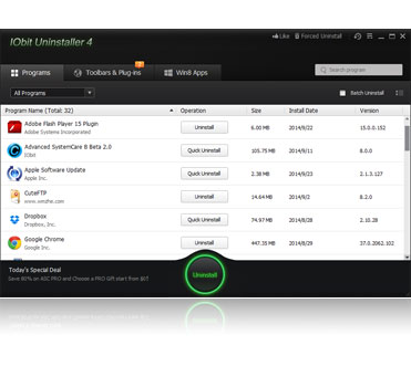 Giri� Yap�n h�zl� ve kolay bir �ekilde bilgisayar�n�za istenmeyen programlar ve klas�rleri kald�rman�za yard�mc� olur. Yerle�ik durumda bulunan "Windows Program Ekle veya Kald�r" se�ene�inin gere�ini yerine getirmemesi durumunda ,IObit Uninstaller her zaman yan�n�zda, kurulum olmadan ve �cretsiz kullanabilirsiniz.