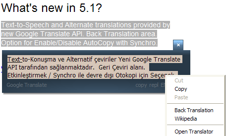 Harici programlardan kelime veya cümle seçerek çeviri yapma